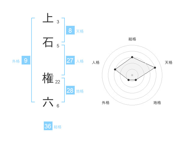上石 権六さんの天格は8画の4点!