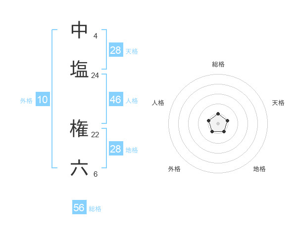 中塩 権六さんの総格は56画の1点!