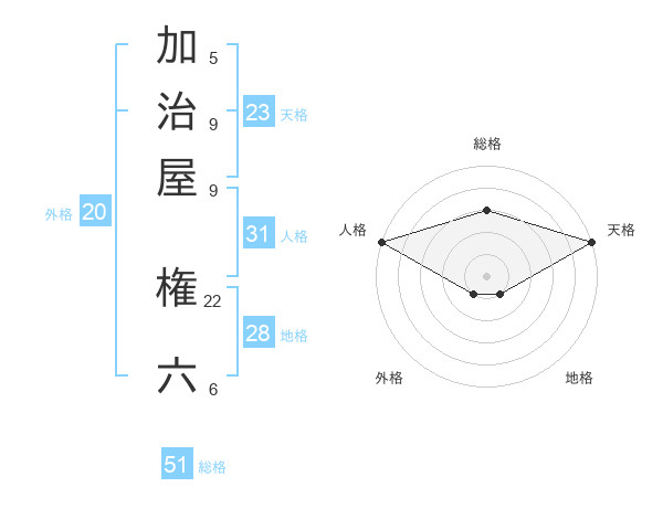 加治屋 権六さんを姓名の画数から五運を鑑定