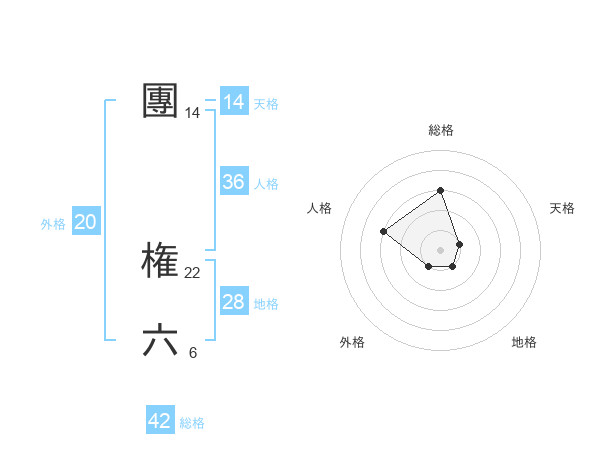 團 権六さんの総格は42画の3点!