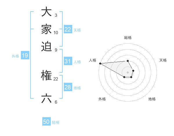 大家迫 権六さんを姓名の画数から五運を鑑定