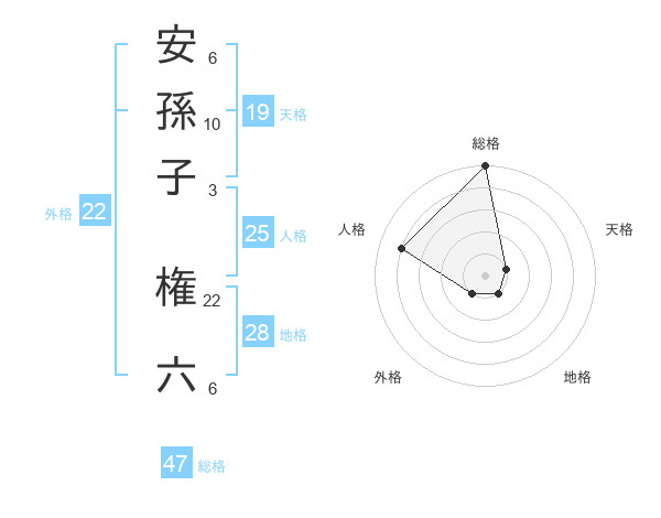 安孫子 権六さんを姓名の画数から五運を鑑定