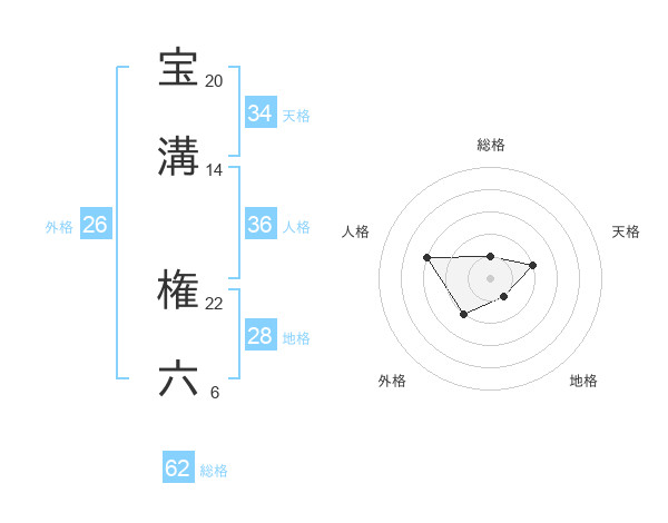 宝溝 権六さんの総格は62画の1点!