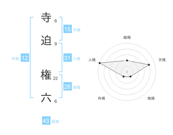 寺迫 権六さんの総格は43画の2点!