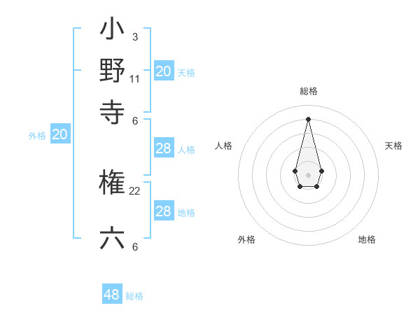 小野寺 権六さんの総格は48画の4点!