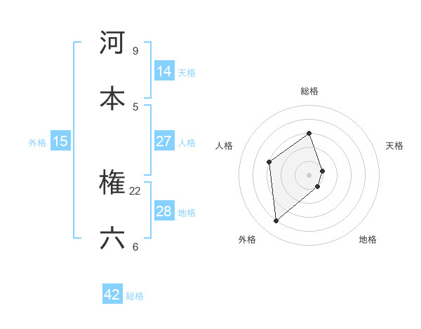 河本 権六さんの総格は42画の3点!