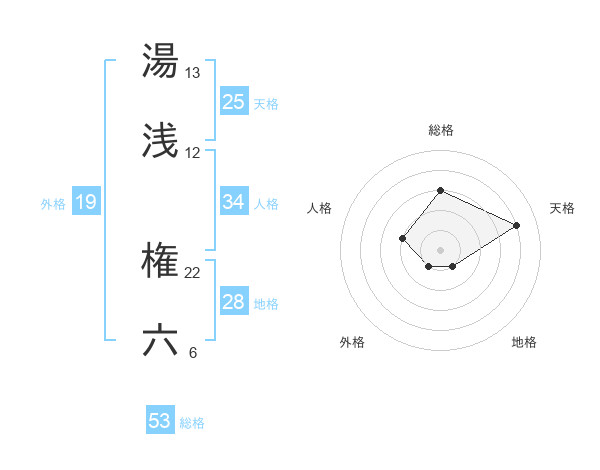 湯浅 権六さんの総格は53画の3点!