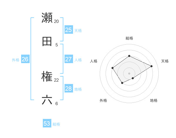 瀬田 権六さんの天格は25画の4点!