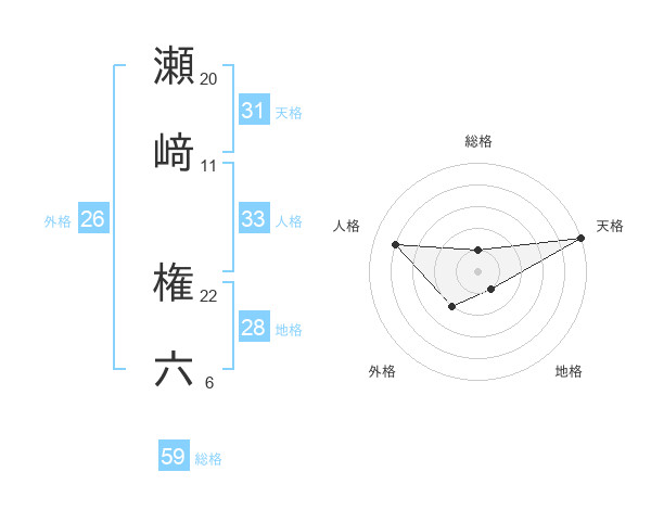 瀬﨑 権六さんの天格は31画の5点!