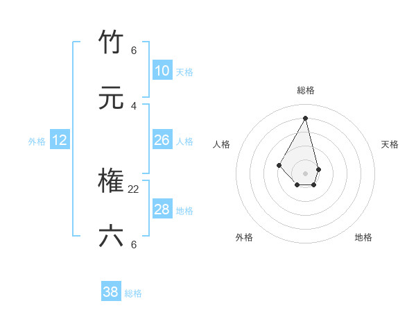 竹元 権六さんの総格は38画の4点!