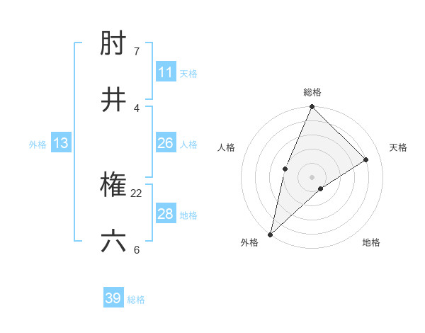 肘井 権六さんの総格は39画の5点!