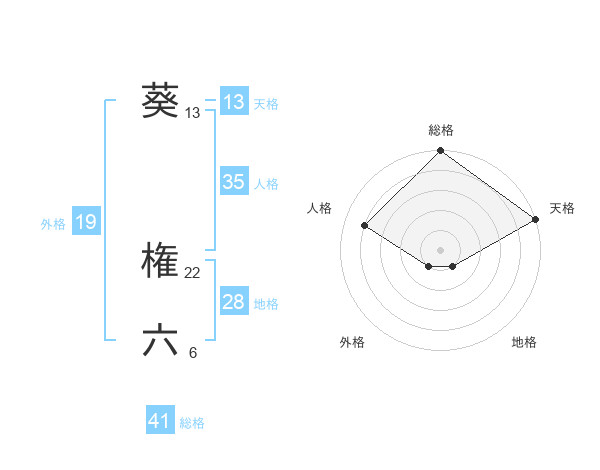 葵 権六さんの天格は13画の5点!