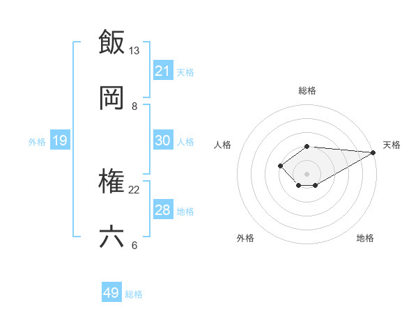 飯岡 権六さんの天格は21画の5点!