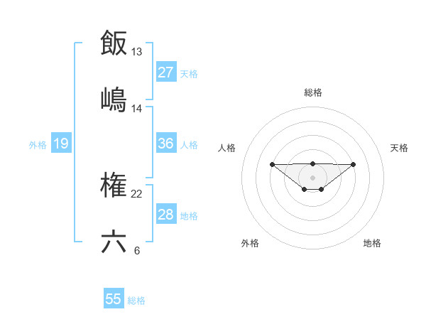 飯嶋 権六さんの総格は55画の1点!
