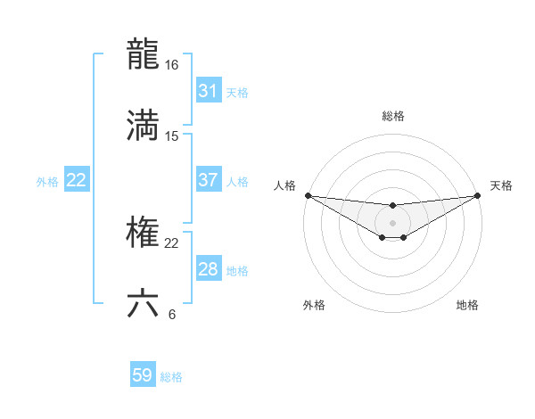 龍満 権六さんの外格は22画の1点!