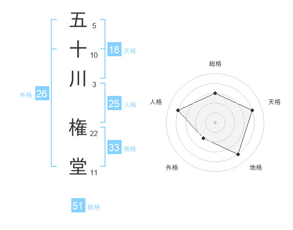 五十川 権堂さんの総格は51画の3点!