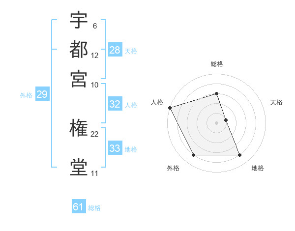 宇都宮 権堂さんを姓名の画数から五運を鑑定