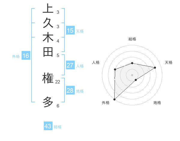上久木田 権多さんの総格は43画の2点!