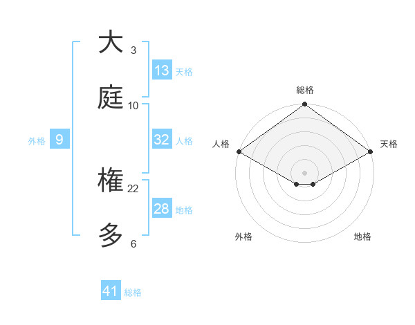大庭 権多さんの総格は41画の5点!