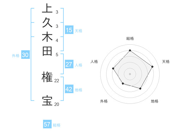 上久木田 権宝さんを姓名の画数から五運を鑑定