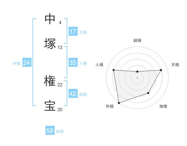 中塚 権宝さんを姓名の画数から五運を鑑定