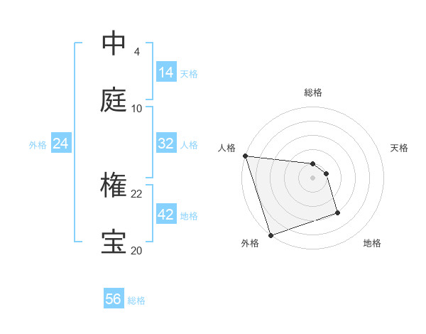 中庭 権宝さんの外格は24画の5点!
