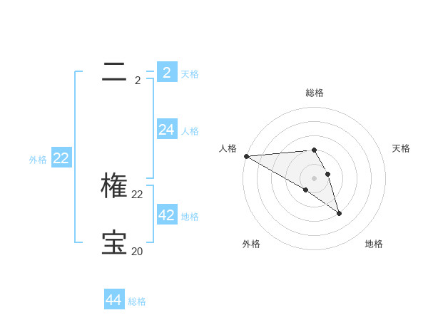 二 権宝さんの総格は44画の2点!