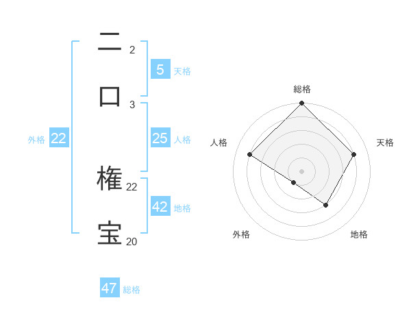 二口 権宝さんの総格は47画の5点!
