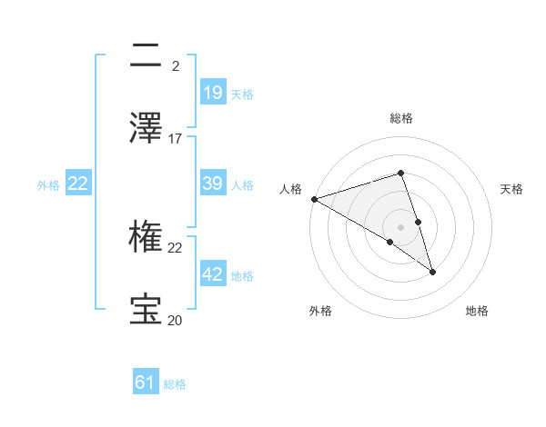 二澤 権宝さんを姓名の画数から五運を鑑定