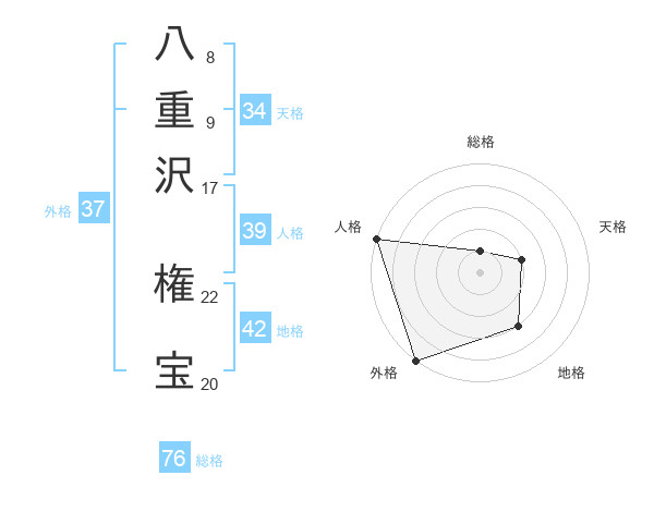 八重沢 権宝さんの外格は37画の5点!