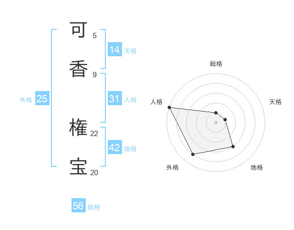 可香 権宝さんの総格は56画の1点!