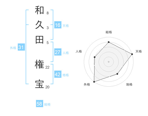和久田 権宝さんを姓名の画数から五運を鑑定