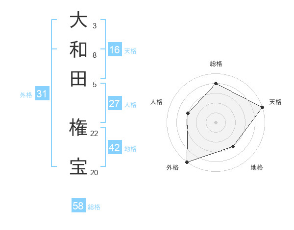 大和田 権宝さんを姓名の画数から五運を鑑定