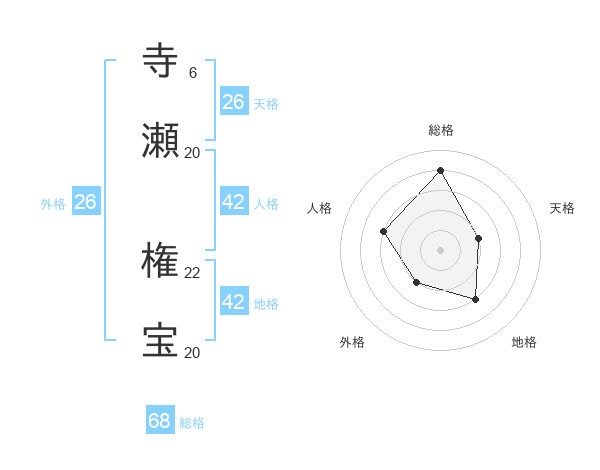 寺瀬 権宝さんの総格は68画の4点!