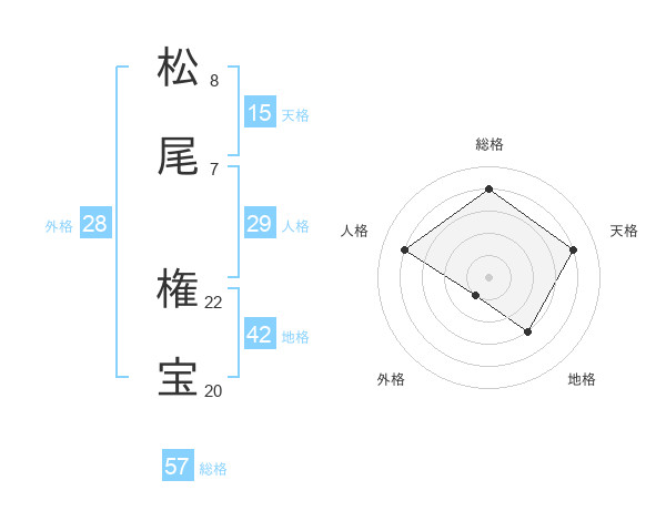 松尾 権宝さんを姓名の画数から五運を鑑定