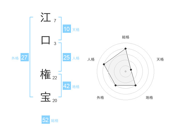江口 権宝さんの総格は52画の4点!