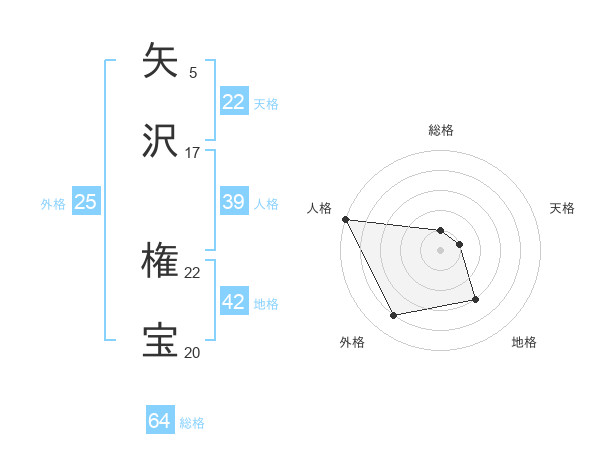 矢沢 権宝さんの天格は22画の1点!