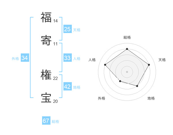 福寄 権宝さんを姓名の画数から五運を鑑定