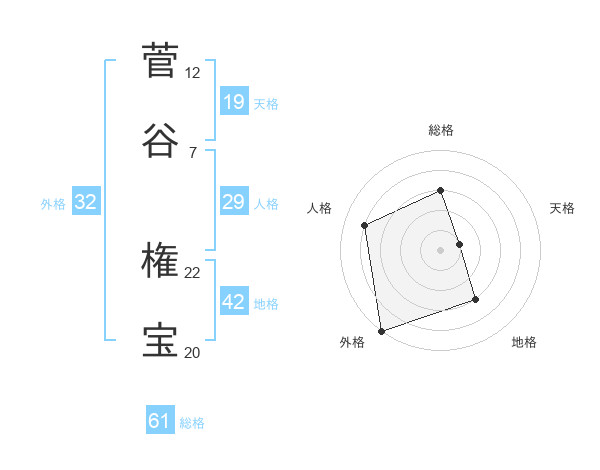 菅谷 権宝さんの総格は61画の3点!