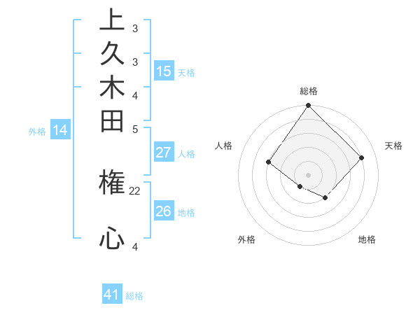上久木田 権心さんを姓名の画数から五運を鑑定
