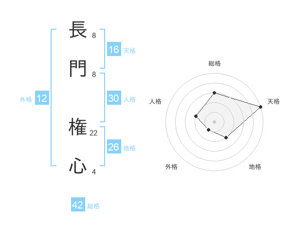 長門 権心さんの総格は42画の3点