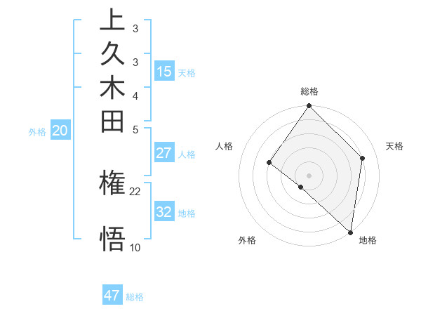 上久木田 権悟さんを姓名の画数から五運を鑑定