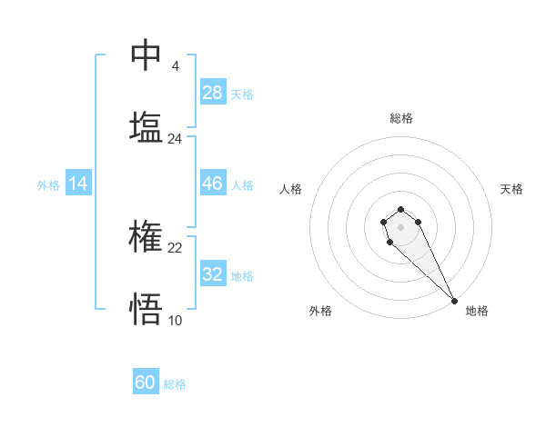 中塩 権悟さんを姓名の画数から五運を鑑定