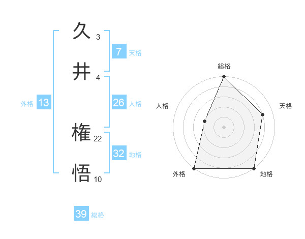 久井 権悟さんの総格は39画の5点!