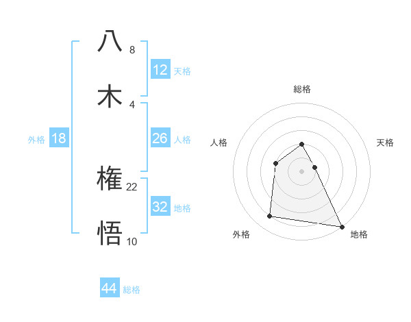 八木 権悟さんの総格は44画の2点!