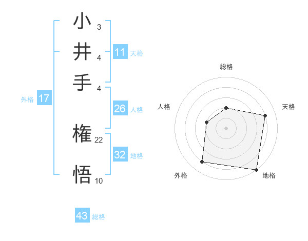 小井手 権悟さんを姓名の画数から五運を鑑定