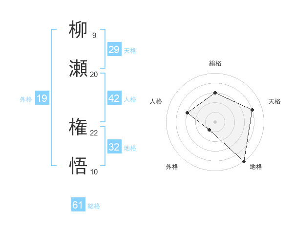 柳瀬 権悟さんを姓名の画数から五運を鑑定