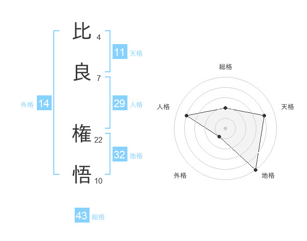 比良 権悟さんの総格は43画の2点!