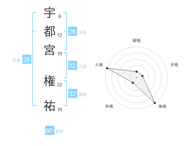 宇都宮 権祐さんの総格は60画の1点!