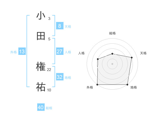 小田 権祐さんの総格は40画の2点!
